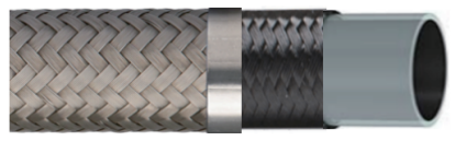 內(nèi)層復(fù)合抗靜電PTFE(polytetrafluoroethylene聚四氟乙烯)無縫擠出工藝,擁有阻燃性,低滲透性,耐疲勞和耐化學(xué)品等多種特性的工業(yè)軟管。中層的纖維編織層增加軟管柔性,防扭結(jié)。外層的緊致不銹鋼編織網(wǎng),使軟管擁有較高的承壓能力。